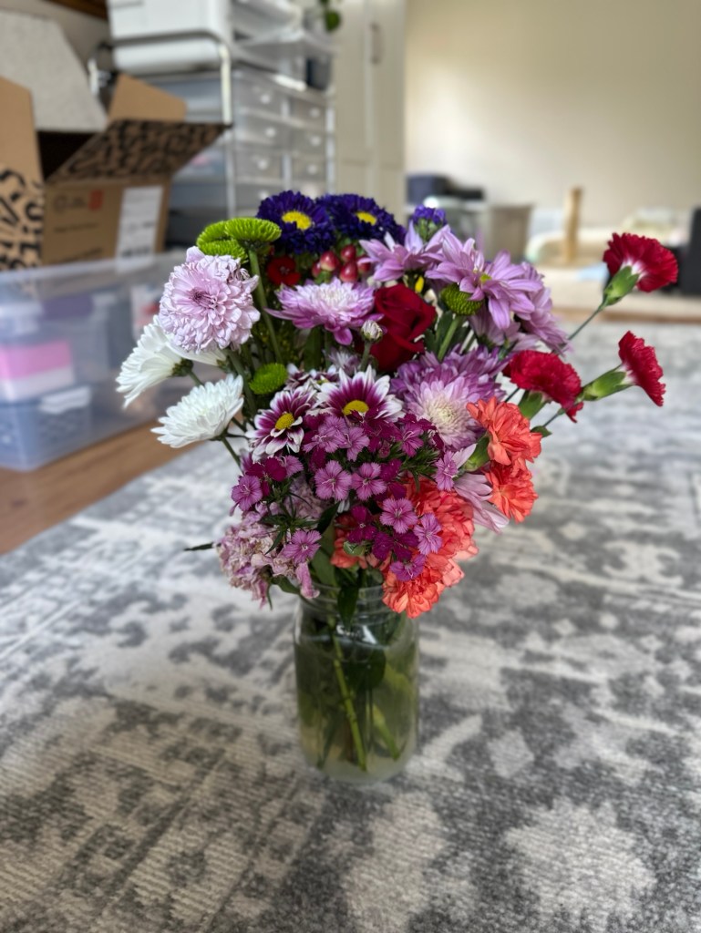 Am I a pro? Absolutely not. Did I pretend I was designing a $200 arrangement for a fancy hotel lobby? Obviously. Did I nail it? Debatable. But every time I walk by, I feel like I should be wearing an apron and charging someone $85 for this “wild and whimsical” masterpiece.