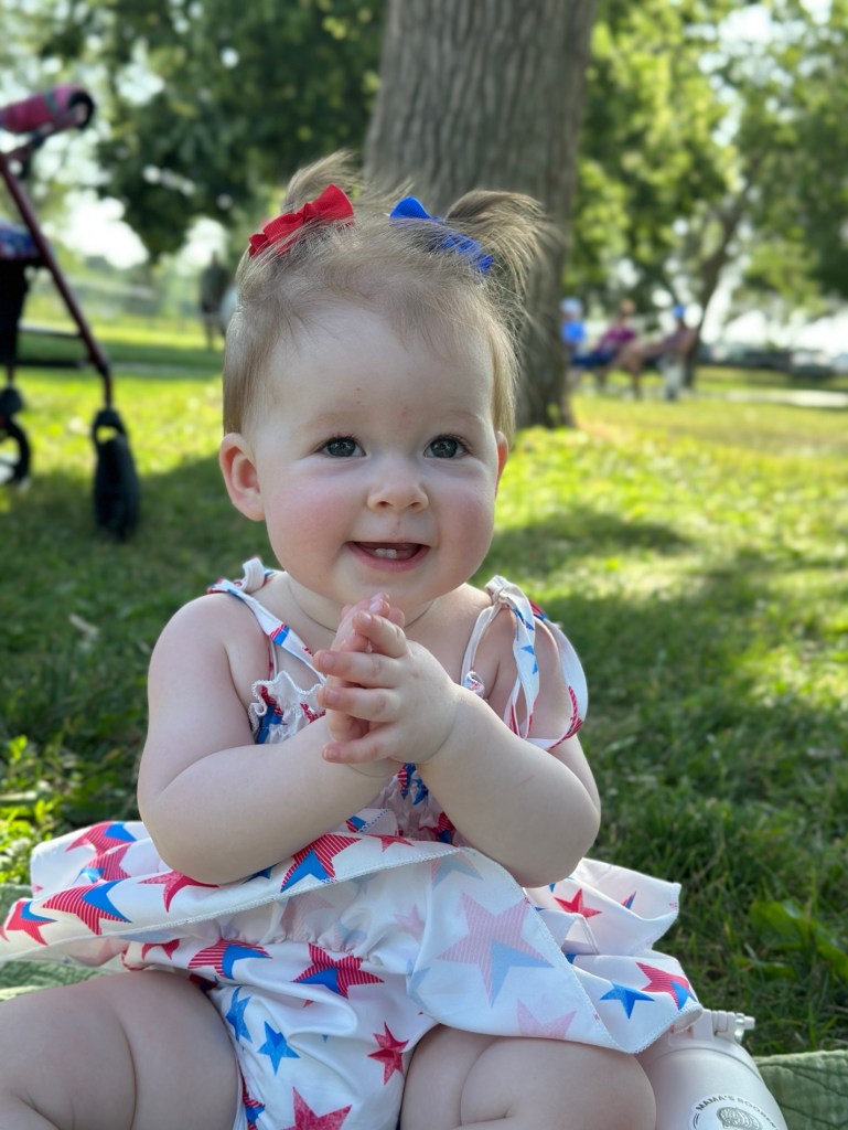 Alice was living her best life in the wind, outfit changes and all. I swear, she waved that tiny hand all the way through both games. By the time we left, she had to be all waved out. It was adorable. She’s got the coordination of a little cheer captain already.