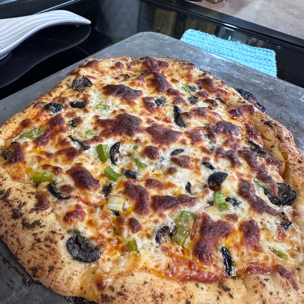 Now let me tell you about this pizza. I really outdid myself. That crust? Golden with an epic crunch I’ve never quite nailed before. The secret? Heating the pan in the oven while it preheats. Life changing. I honestly don’t know how I’ve never done that before. Add in the stuffed crust and that buttery, garlicky goodness on top, my mouth is watering just thinking about it again.