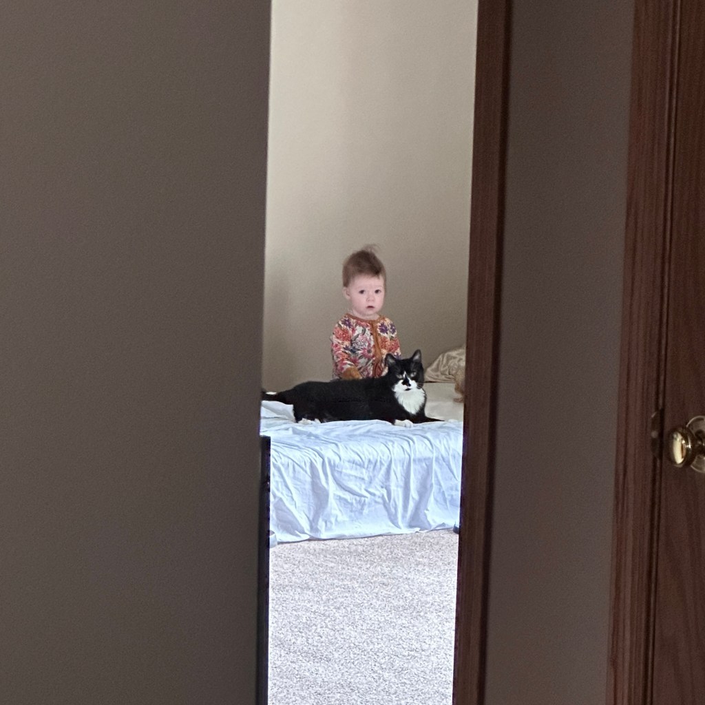 One is patiently waiting for her raw pork breakfast. The other is ready for her morning top-off nursing session. And when I peek around the corner and see them sitting there together, side by side like a tiny welcoming committee? I melt.